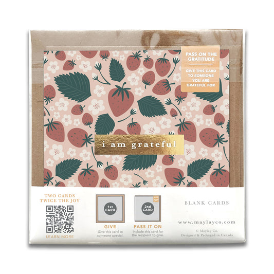 Strawberries Floral "I Am Grateful" Gratitude Greeting Cards